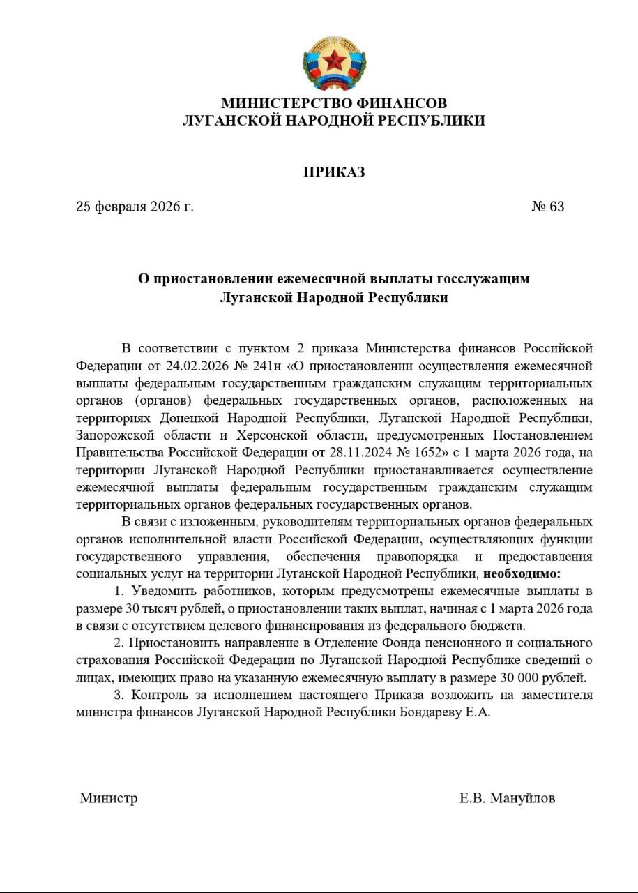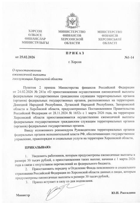 «Данная информация не соответствует действительности и является фейком. Ежемесячные выплаты сотрудникам федеральных госорганов на территориях ДНР, ЛНР, Запорожской и Херсонской областей выплачиваются в установленном порядке», — заявил представитель Минфина России.