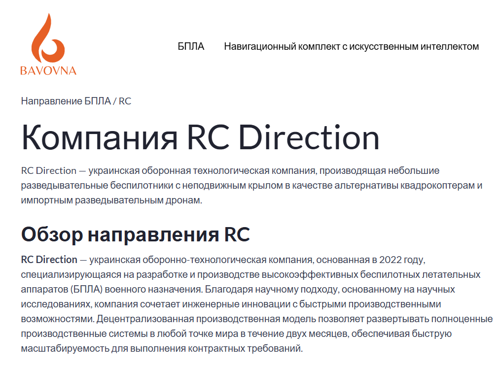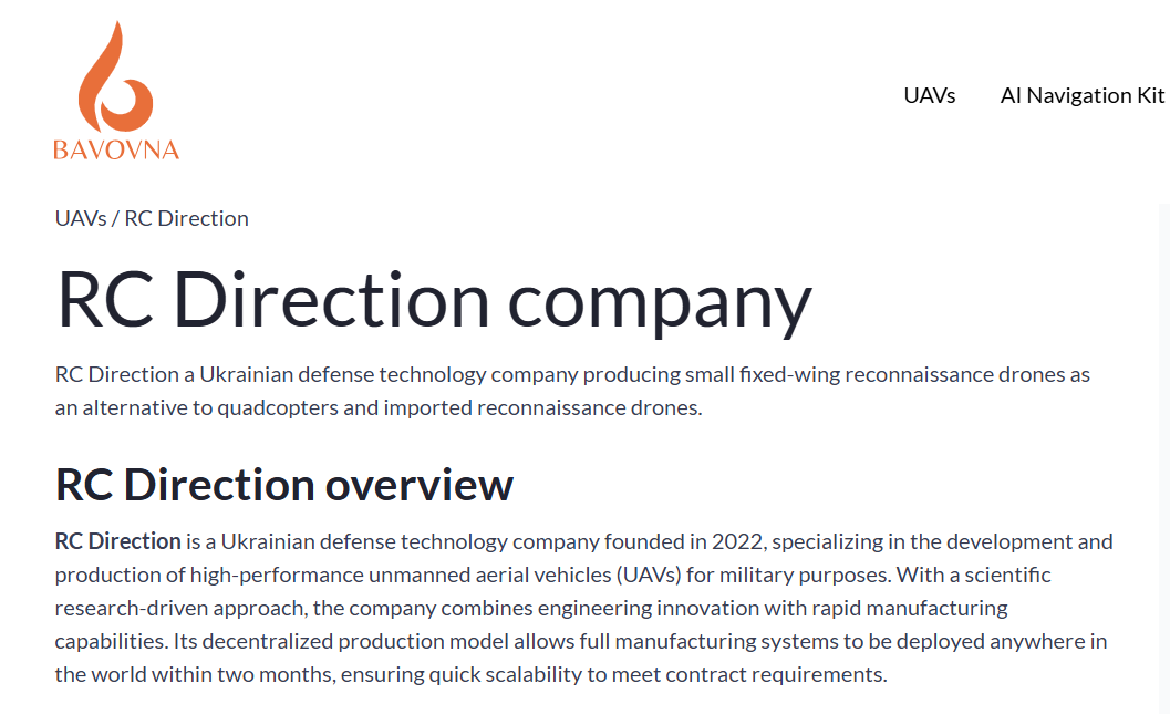 Также можно установить, что по этому адресу располагается украинская оборонная компания RC Direction. На официальном сайте предприятия указано, что оно занимается производством БПЛА в качестве альтернативы иностранным моделям.