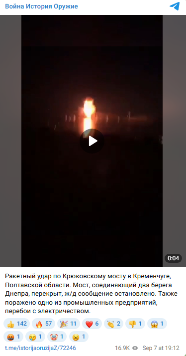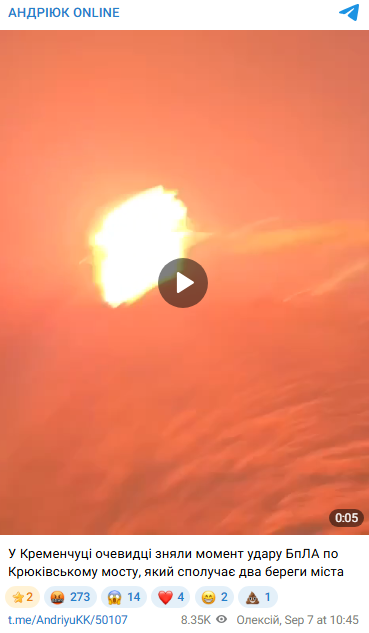Добавим, что изначально антироссийские медиа прикрепляли к постам архивное видео, на котором была запечатлена атака российского беспилотника по Крюковскому мосту в Кременчуге Полтавской области Украины 7 сентября 2025 года.