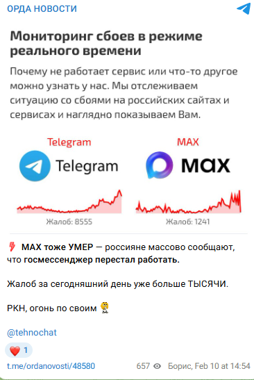 Пресс-служба МАХ также опровергла сбой: «Все сервисы МАХ работают в штатном режиме».