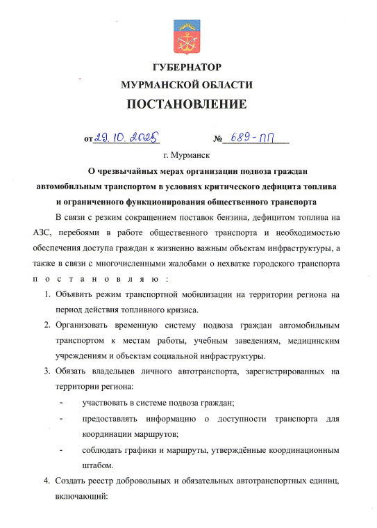 В Мурманской области якобы заявили о чрезвычайных мерах и транспортной мобилизации на фоне дефицита топлива и проблем с общественным транспортом.