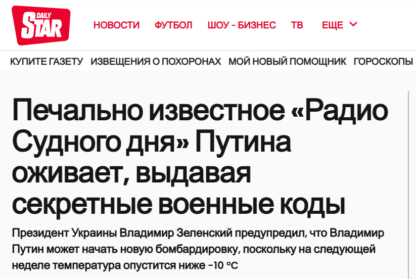 К слову, таблоид, опубликовавший фейк, даже связал работу радиостанции УВБ-76 с падением температуры в России до -10 градусов, что демонстрирует направленность издания на поиск сенсации.